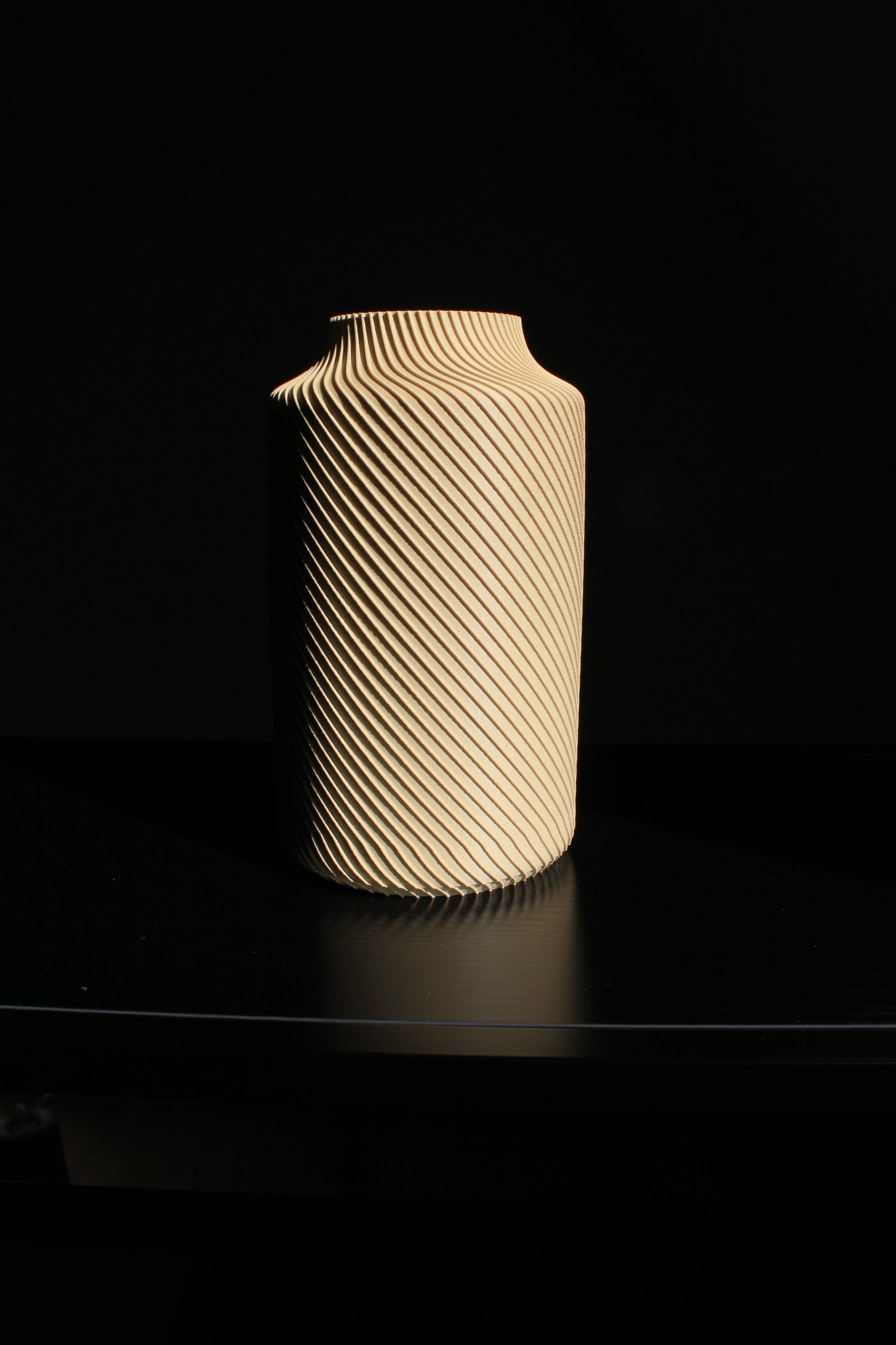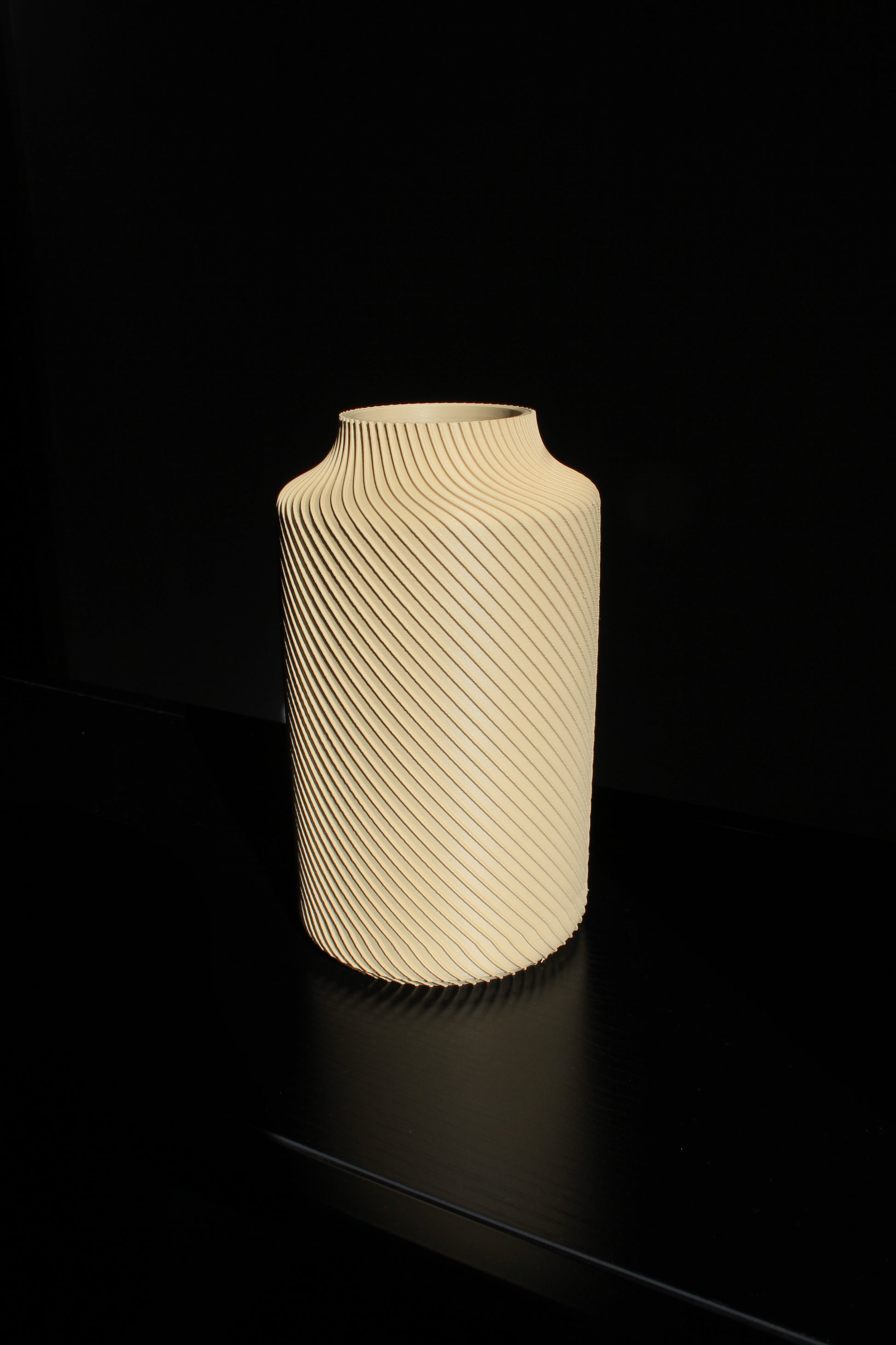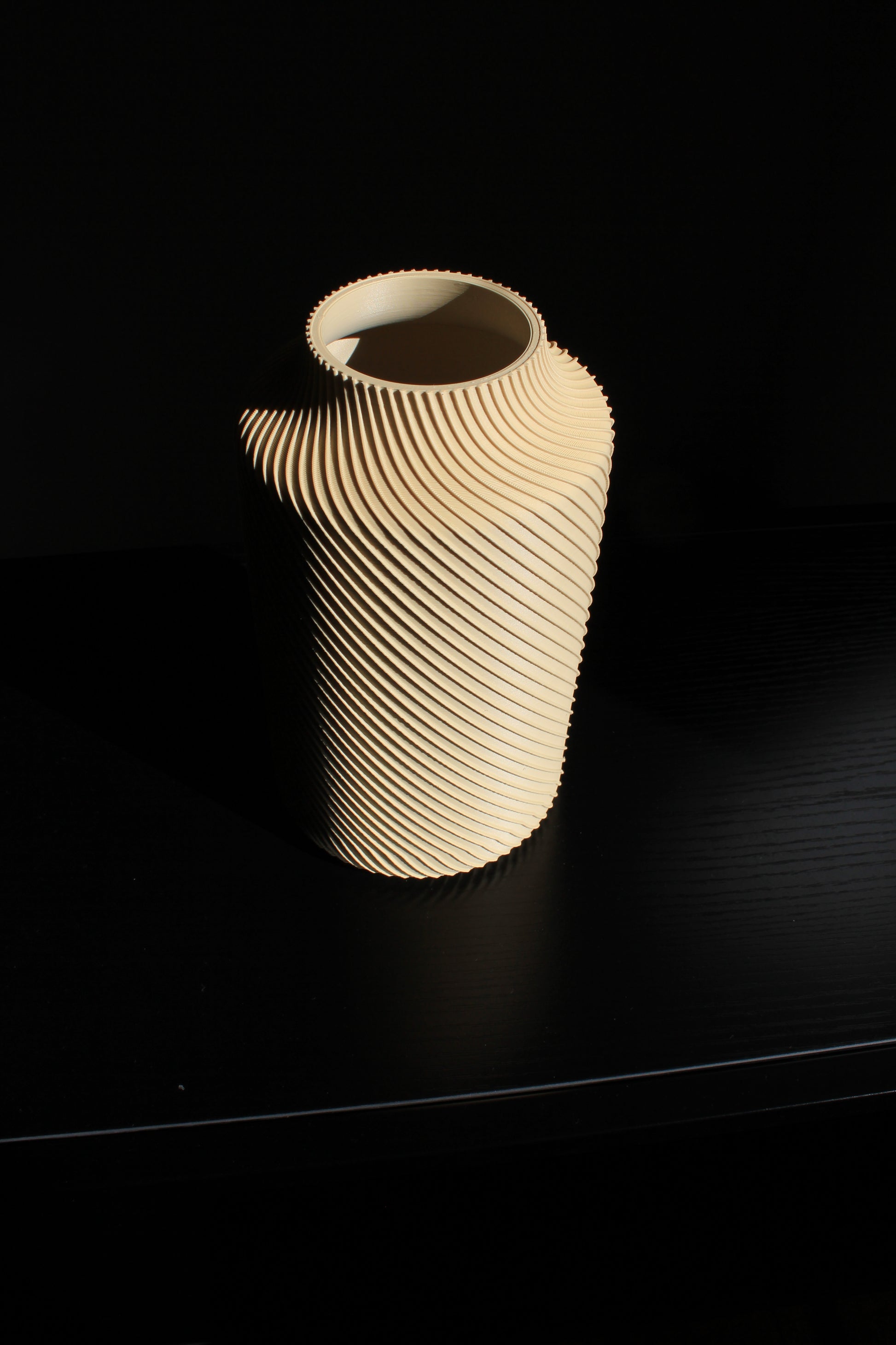 Tauchen Sie ein in die Welt des modernen Designs mit Skaven, einer außergewöhnlichen Vase, die Kunst und Technologie vereint. Mit höchster Präzision im 3D-Druckverfahren gefertigt, besticht Skaven durch ihre dynamische Spiralstruktur, die sich in perfekten Linien um den Körper der Vase windet. Das Design spielt mit Licht und Schatten, wodurch ein faszinierendes Wechselspiel aus Tiefe und Bewegung entsteht – selbst im Stillstand.